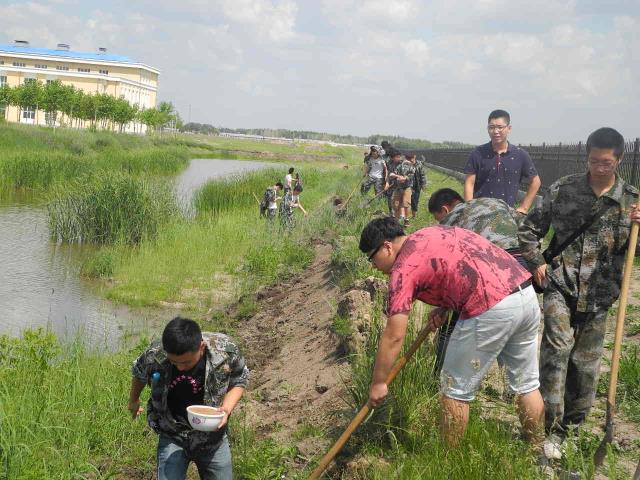老师及同学们乘坐通勤车10:00抵达华德学院兰榆校区。按照张锐老师的布置,老师及同学们围绕着兰榆校区“日湖”和“月湖”种植花草,由于气温较高,天气干燥,不多时汗水就打湿了同学们的衣服,但这丝毫没有影响到同学们对于美化新校区的热情,同学们拿着劳动工具没有一个人喊热喊累,华德精神和机电学院的优良传统在这些同学身上展现的淋漓尽致。三位老师带领着同学们沿着湖畔一路铺洒草籽,虽然野草齐腰,道路泥泞,但从同学们的眼中仿佛就看到了兰榆校区美好的明天。