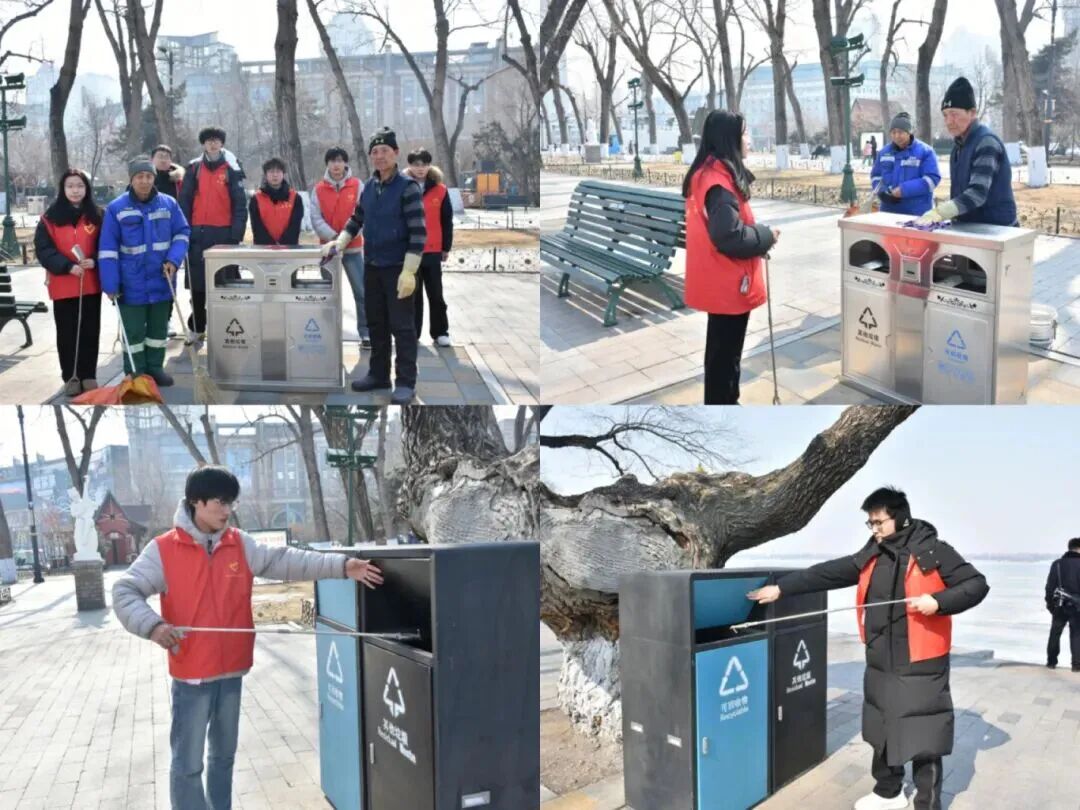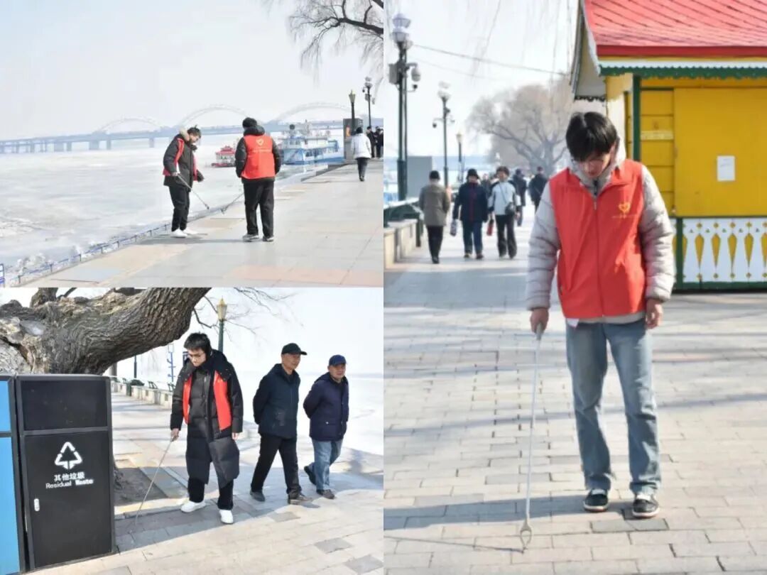 随后,志愿者们与环卫工人并肩协作、携手开展环境清洁,以实际行动致敬默默坚守的城市美容师,传递绿色环保理念,倡导文明健康风尚,充分彰显了新时代青年的责任担当与奉献精神,为春日的松花江畔增添了一抹温暖而亮丽的青春亮色。