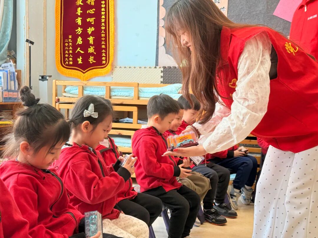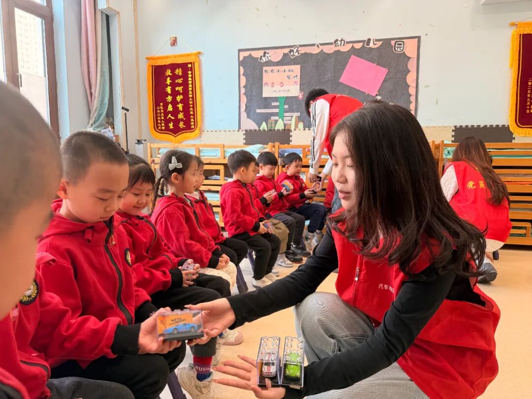 在互动分享环节,小朋友们踊跃举手,用稚嫩的声音讲述自己身边的好人好事,表达了向雷锋叔叔的敬佩之情。活动最后,志愿者们为每位小朋友送上了精心准备的小汽车模型作为礼物,希望他们能像小汽车一样,在成长的道路上充满活力,快乐向前。