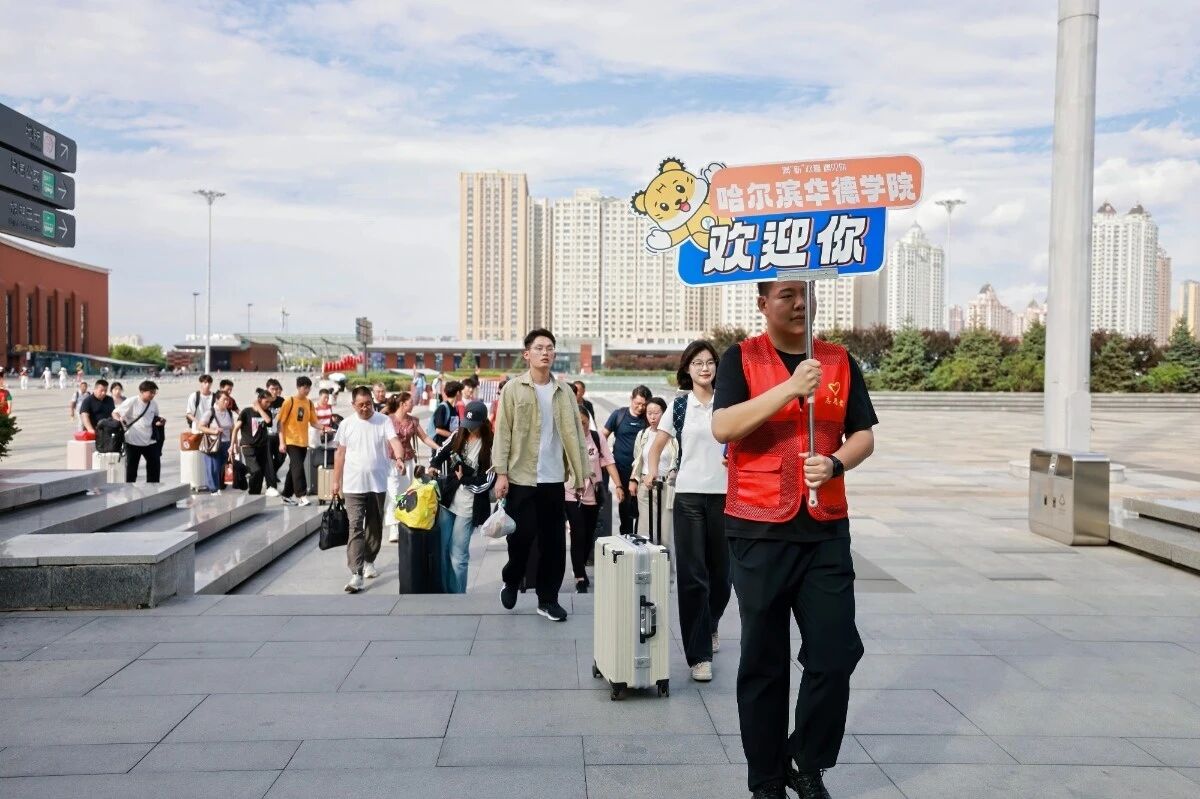 凌晨五点,当城市还在沉睡,志愿者们已经整装待发。在哈尔滨西站及校园内设立了多个志愿服务点,开展为期两天的迎新志愿服务活动。当首趟载着新生的列车缓缓驶入站台,志愿者们立刻投入工作。“同学,请问是来华德学院报到的吗?”“家长您别累着,行李让我来帮您提!”一句句热情的招呼,像暖流般化解了新生与家长旅途的劳累,也消除了他们初到陌生环境的局促。