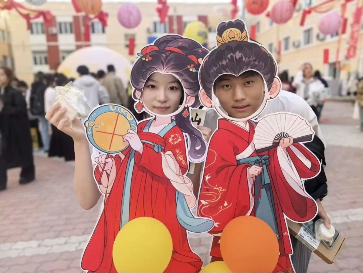 丢沙包区的特制木板上,三个月饼造型的洞口格外吸睛,20分的小洞口考验精准度,5分的大洞口适合稳定得分。30秒倒计时开启,同学们手持沙包屏息瞄准,沙包击中木板的“砰砰”声与围观同学的呐喊助威声交织,只要总分达到50分,就能赢得香甜的冰皮月饼,不少同学为冲击高分反复挑战,现场欢呼声此起彼伏。