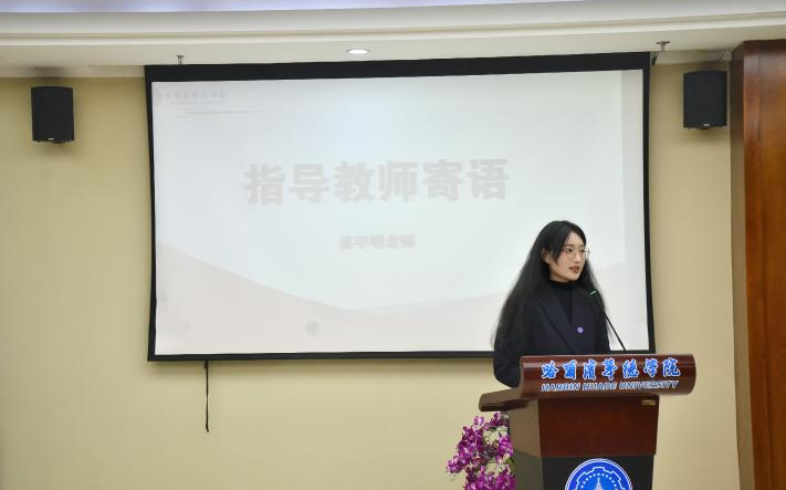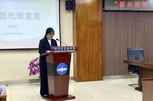 校园文化馆讲解团指导教师焦宇明在总结寄语中,高度肯定了上一届成员通过专业讲解服务文化馆育人阵地的贡献,同时也对新成员一个多月以来的培训及多次考核中的付出与成长予以充分认可。她期望全体成员持续夯实基本功,勇于突破自我,通过讲解不断提升能力,并寄语新成员迅速成长,为讲解团注入新的活力。