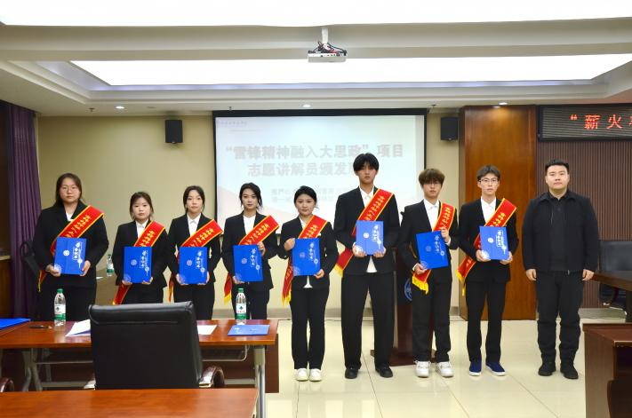 为充分发挥文化馆的阵地育人功能,校园文化馆从参与入馆研学(志愿服务)实践培训的2025年春季学期团校学员中,选拔了一批优秀成员进行专项讲解员培训。经过系统的培训与严格的考核,一批同学脱颖而出。在会上,校团委书记刘赢之为他们颁发了“雷锋精神融入大思政项目志愿讲解员”聘书。这不仅是对他们参与入馆研学实践的认可,更是一份沉甸甸的责任。