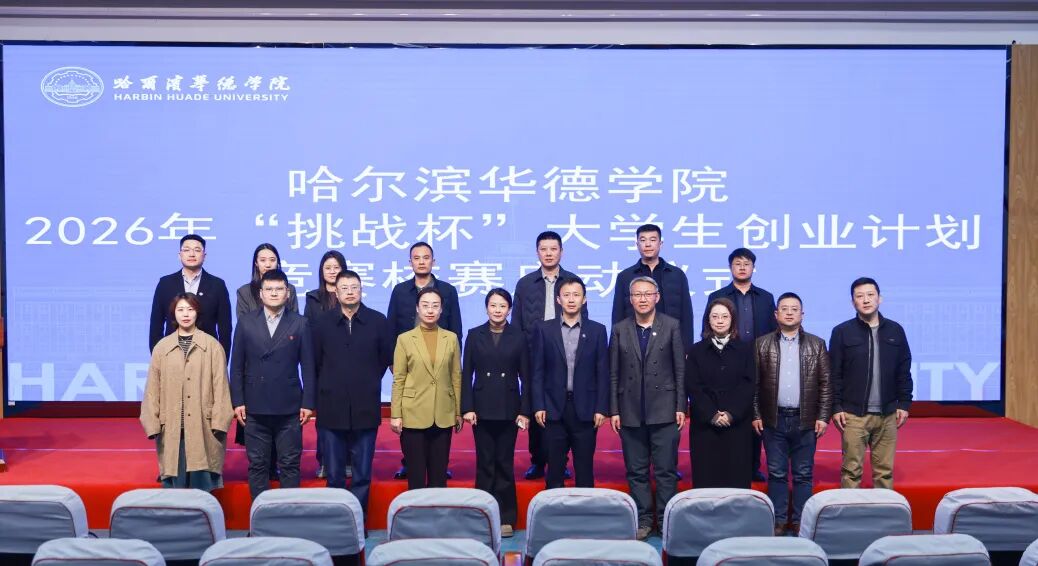 为深入学习贯彻习近平新时代中国特色社会主义思想,培育青年创新创业能力,助力教育科技人才融合发展,3月16日,哈尔滨华德学院在图书馆学术报告厅举行2026年“挑战杯”大学生创业计划竞赛校赛启动仪式。副校长张艳、副校长魏可霏、校长助理朱斌海出席,学生处处长马旭远、各学院院长、教师代表及学生处、校团委相关人员、全体辅导员和学生代表参加本次仪式。仪式由校团委书记、学生处副处长高雨萌主持。