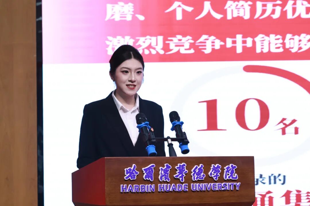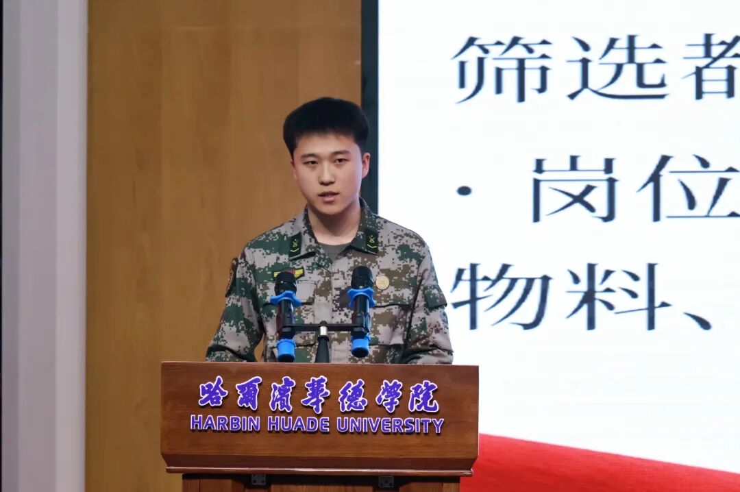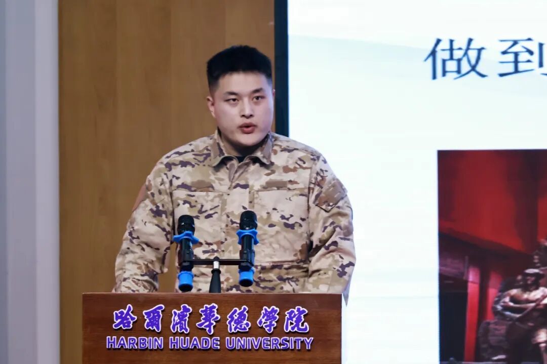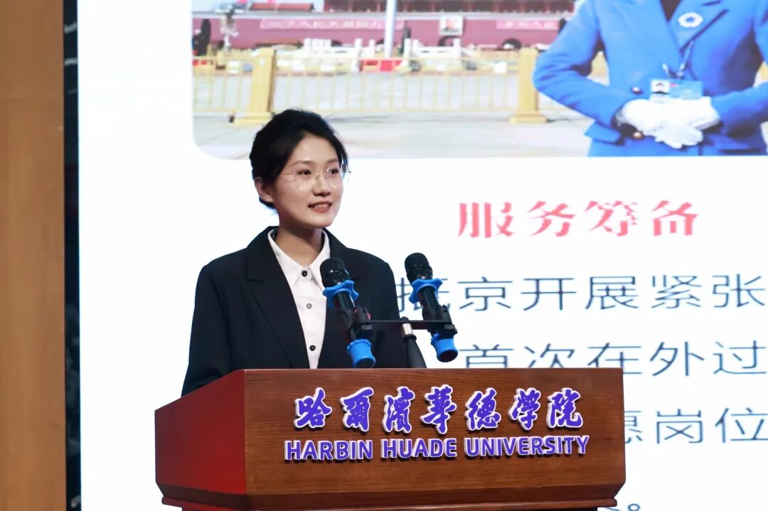 宣讲会上,五位青年志愿者依次登台分享,用最真挚的话语讲述最动人的青春故事。其中,数据科学与信息工程学院学生潘贵轩、艺术与传媒学院学生孔祥爱、智能制造工程学院学生刘恒、艺术与传媒学院学生张奕雯四名同学,凭借扎实的专业素养和过硬的综合能力,在层层选拔中脱颖而出,在全国两会期间参与服务保障工作。他们分别从自身经历出发,分享了在国家级会议岗位上的坚守与付出,讲述了从校园学习者到服务者的角色转变,细数了志愿服务中的收获与成长,用严谨细致的态度诠释着华德青年的责任与担当,让现场师生真切感受到了华德学子在国家级舞台上展现的专业风采。