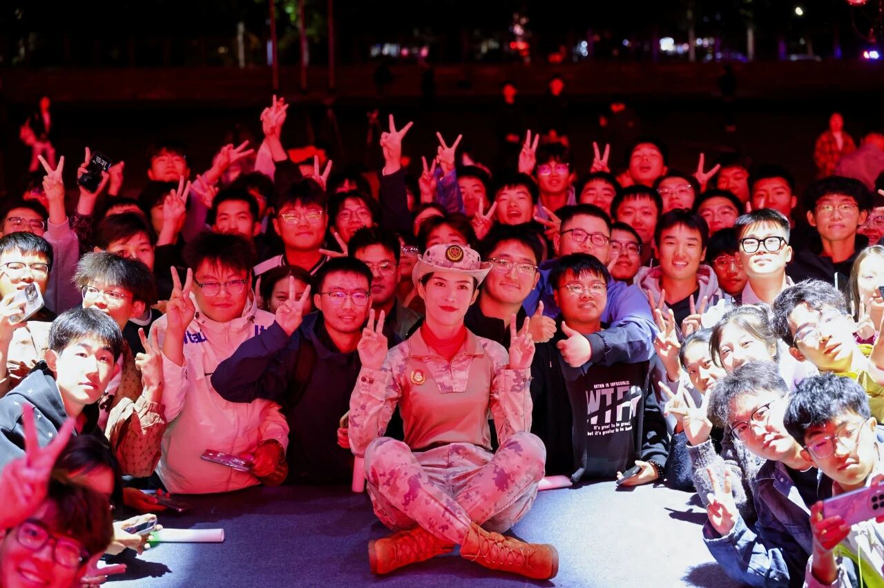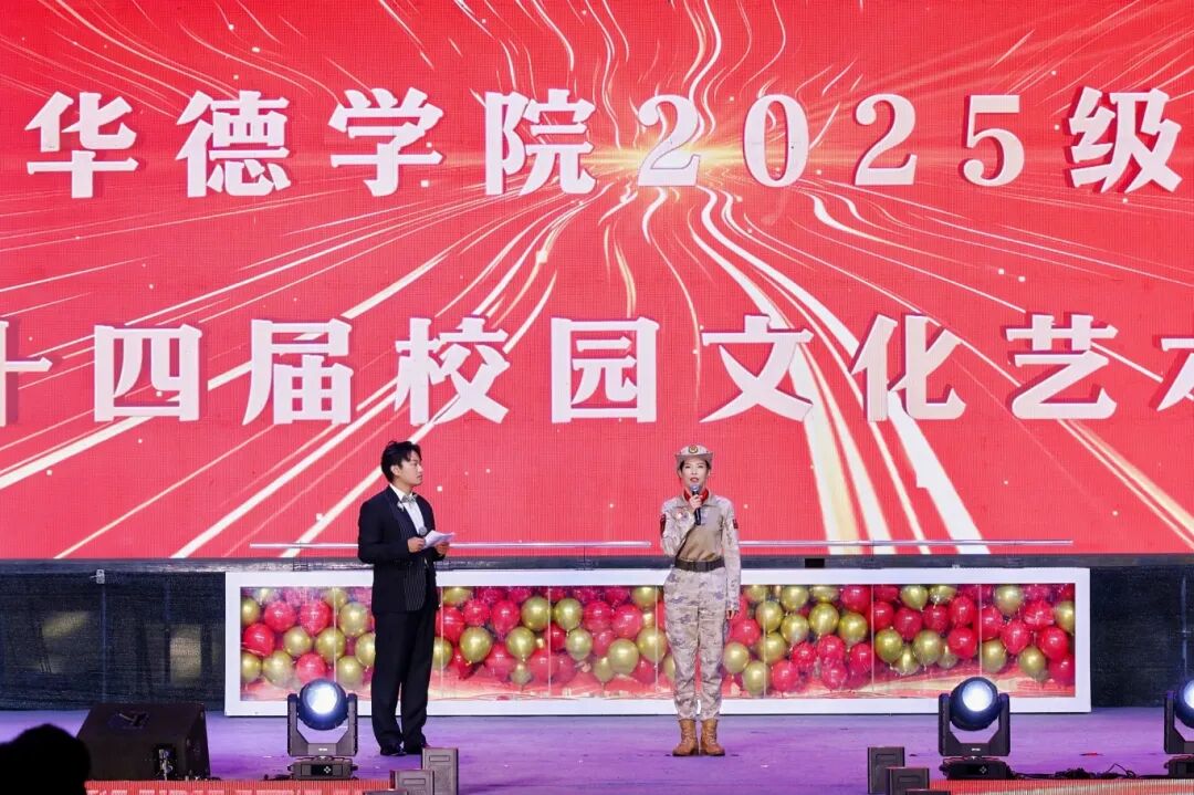 随后,乔鑫踢着标准有力的正步,身着挺拔军装,目光坚定地走向舞台中央。那一刻,仿佛阅兵场的荣光再次重现华德校园。她面向全场师生,声音清晰而有力:“这些鲜花,不仅属于我,更属于每一位为梦想坚持、为祖国努力的你们!”