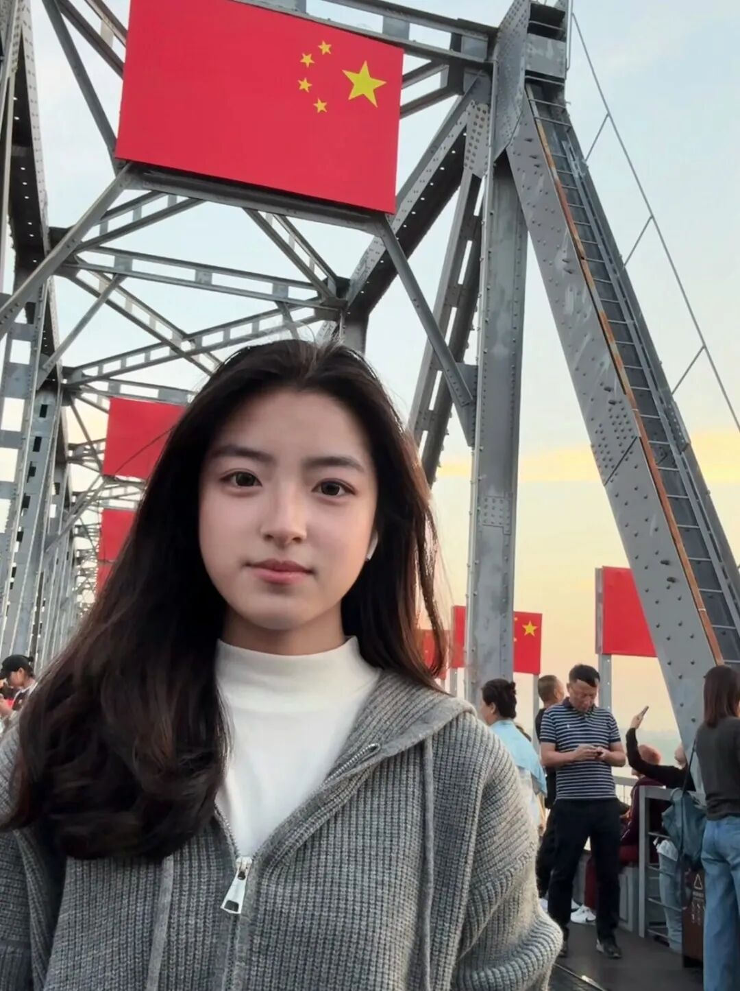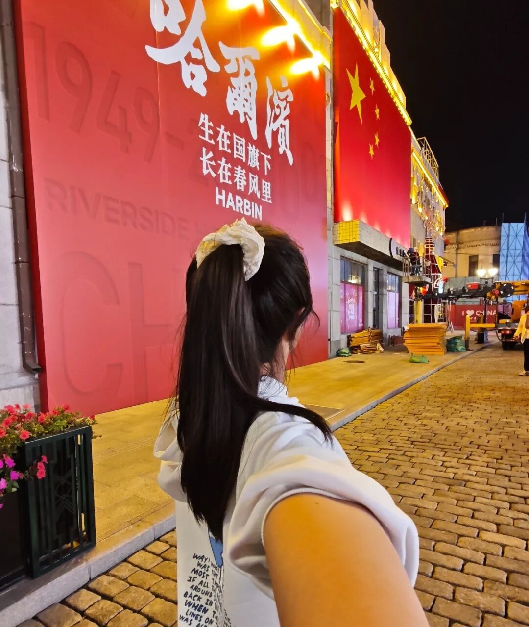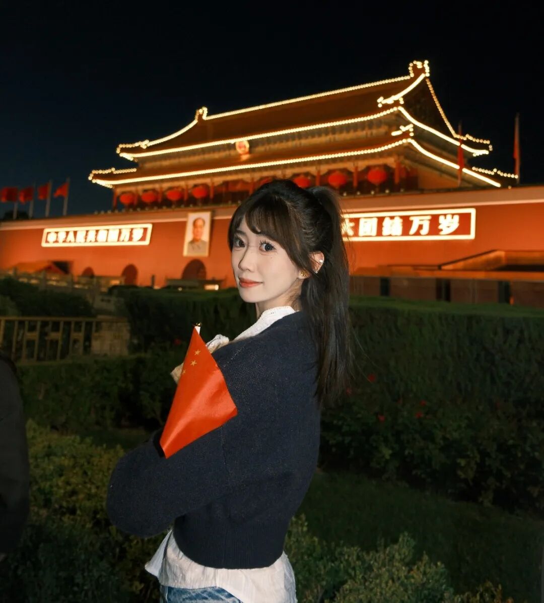 和国旗打卡合影