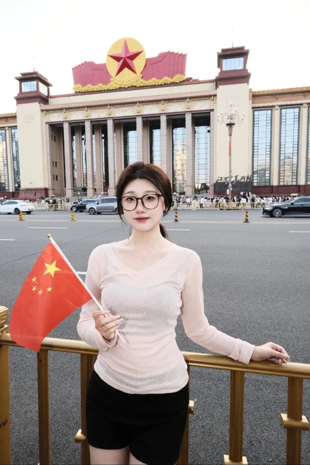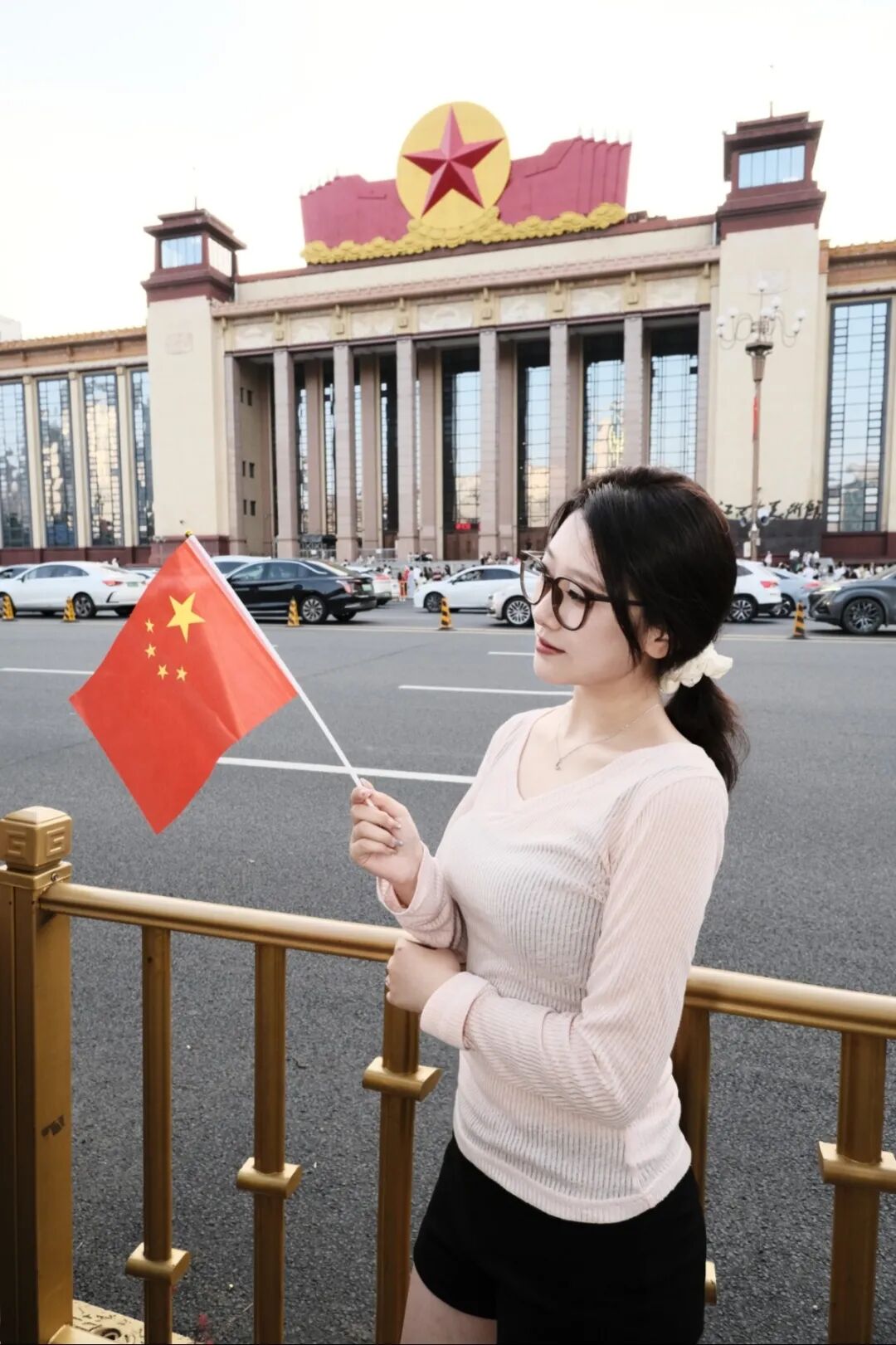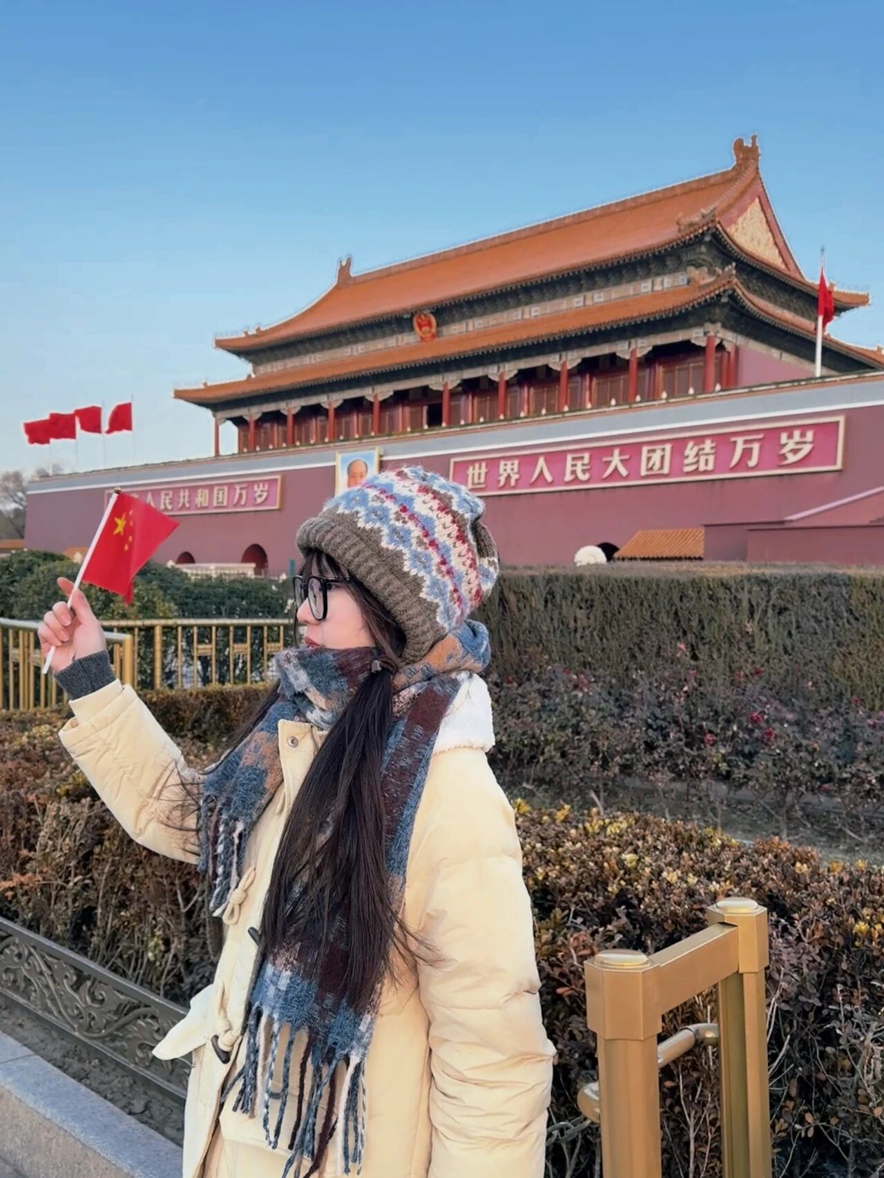 和国旗打卡合影
