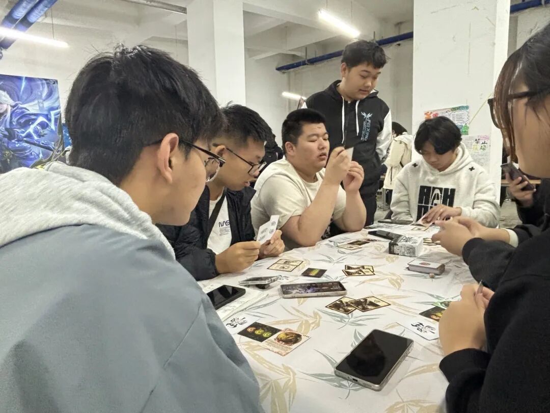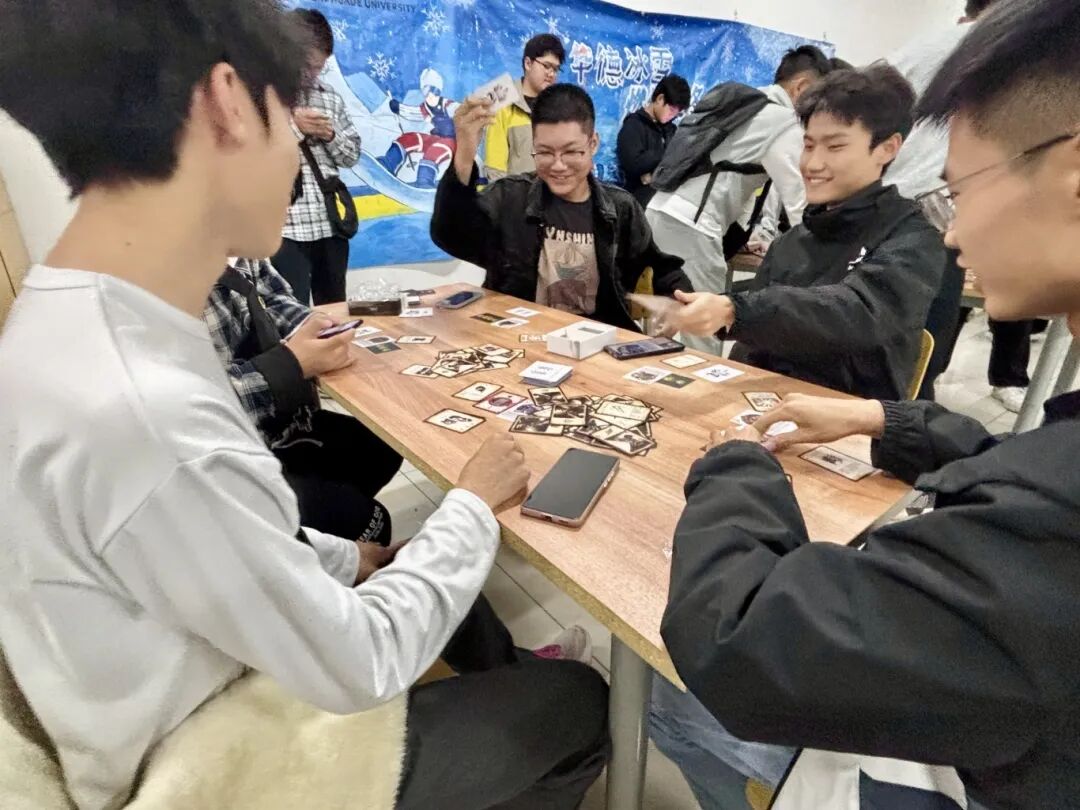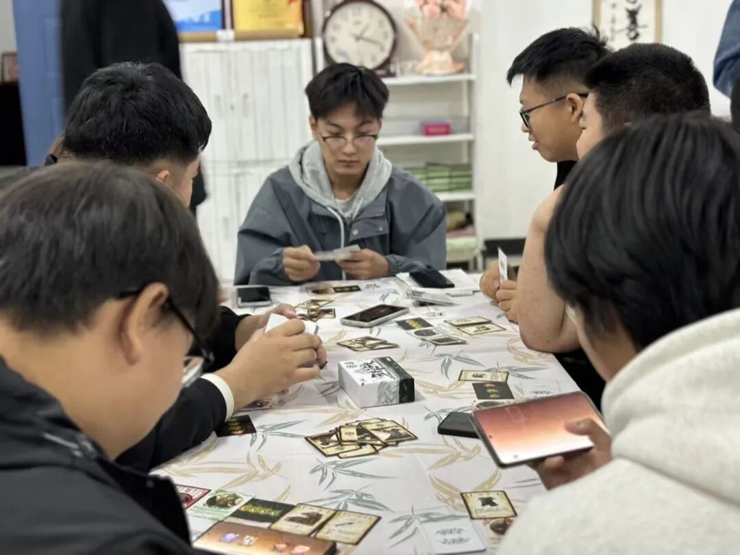 除了紧张的赛事,活动现场特设的“新手教学区”和“自由对弈区”,成为了校园兴趣社交的温暖纽带:资深玩家主动化身“导师”,手把手教零基础的同学认牌、记技能,耐心解答“武将搭配”“出牌顺序”等疑问;刚结束对决的选手,转身就和对手坐在同一桌开启“友谊赛”,笑着复盘刚才的失误、分享破局思路;甚至有不同院系的同学,因为都偏爱“诸葛亮”“郭嘉”等武将,当场互加好友,约定赛后组建固定“牌搭子”,周末继续切磋。