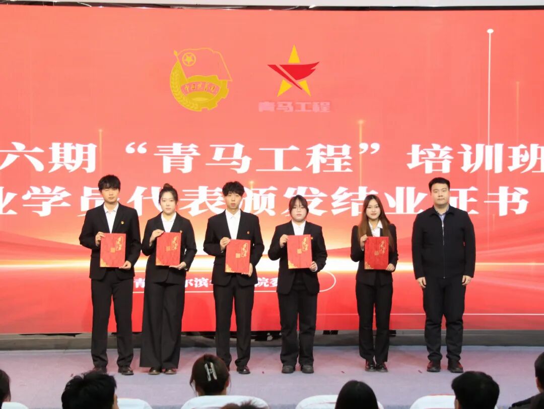 △ 校团委书记刘赢之为第六期“青马工程”培训班结业学员代表颁发结业证书、为优秀学员颁发优秀证书