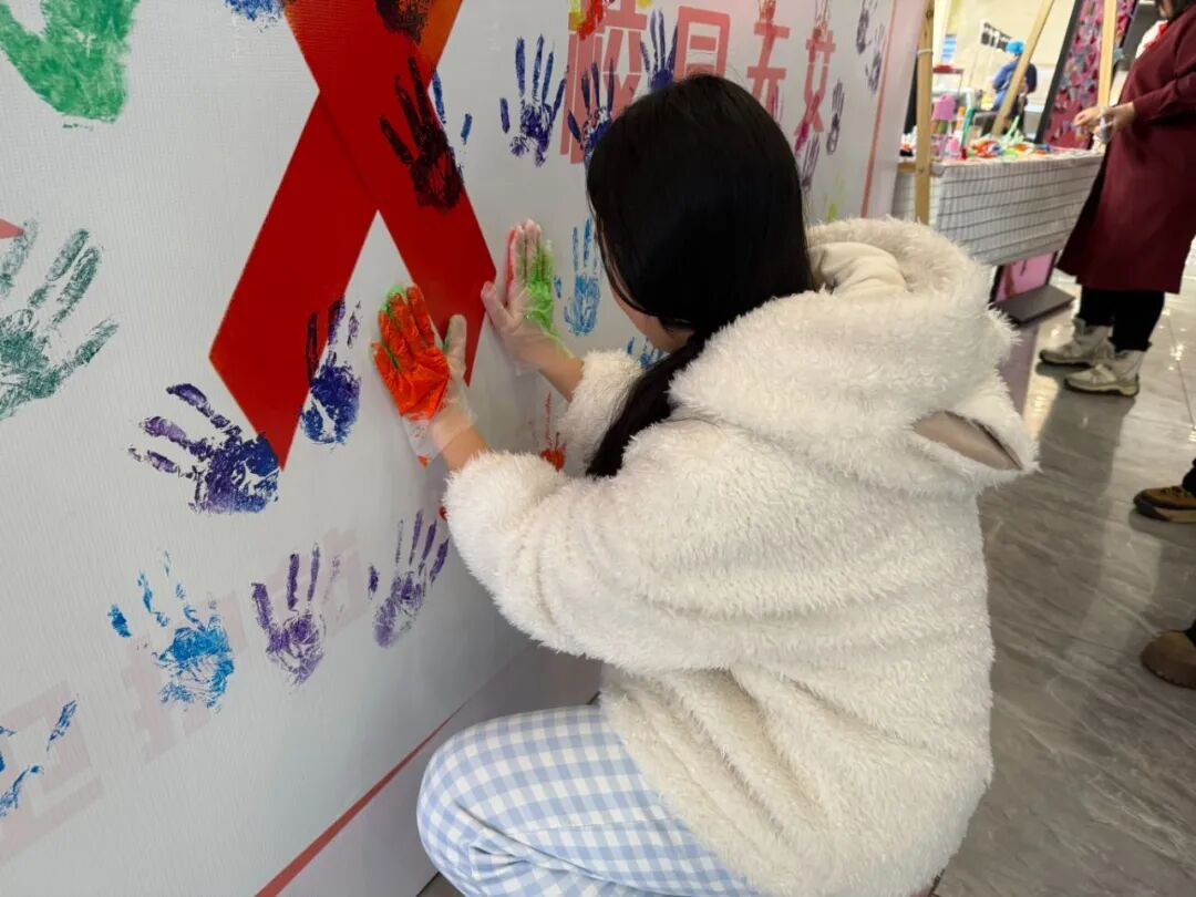 防艾知识专区同样吸引了众多同学的热情参与。活动现场,趣味竞猜环节不仅考验了大家的知识储备,更在欢声笑语中提升了防艾意识。指尖翻牌对对碰游戏,让同学们在轻松愉快的氛围中加深了对防艾知识的理解。签名手印墙前,大家纷纷留下自己的印记,用行动传递爱心,将防艾理念深深印入心间。