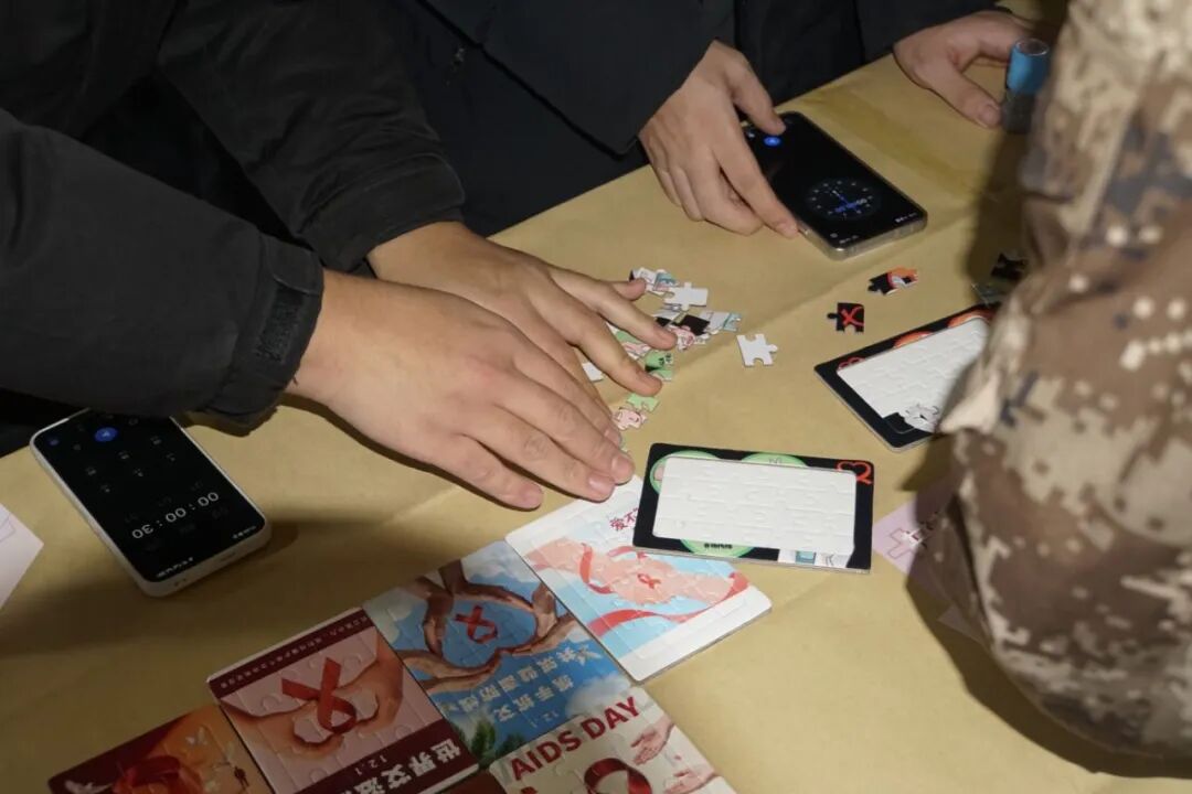 在观影区的挑战中,同学们通过完成艾滋知识宣传拼图和认真观看我校学生自制的艾滋宣传片,逐步深入地了解艾滋病的相关知识。每一次的拼接动作,每一帧视频画面的播放,都是对预防艾滋知识的一次次深刻剖析和意义深远的教育实践。