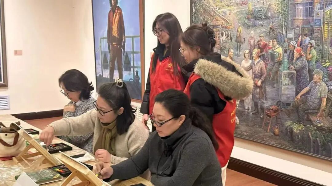 在讲解员的带领下,华德学子深入了解油画艺术的时代内涵与创作理念,并在油画体验环节中,从调色构图到笔触肌理,将课堂所学转化为实践表达,完成从“艺术欣赏者”到“实践创作者”的身份转变,在艺术浸润中拓展审美视野,在实践创作中激发创新活力。