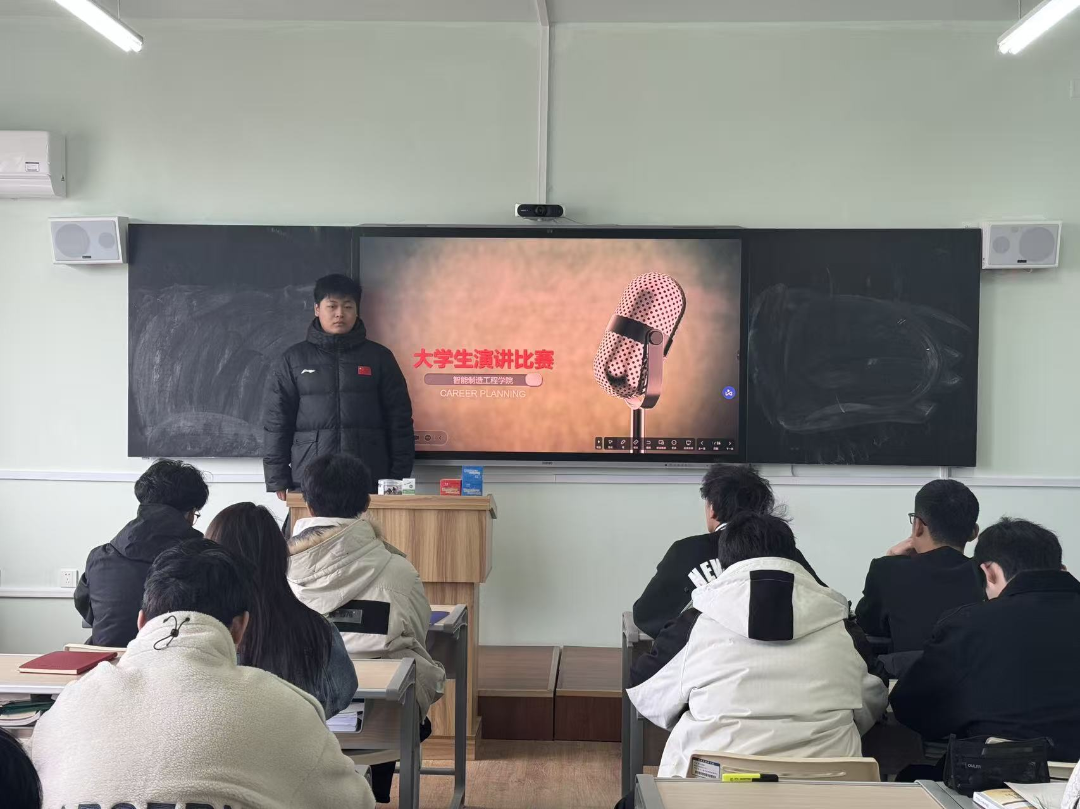 智能制造工程学院班赛现场将个人理想融入国家发展的宏伟蓝图。从“大国工匠”精神讲述了选择工科专业的初心;结合寒假返家乡社会实践经历,表达了将所学知识带回家乡、改变家乡的理想。一句句掷地有声的誓言,描绘着“小我”融入“大我”的坚定信念。
